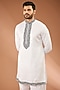 White Cotton Silk Thread & Sequins Hand Embroidered Kurta Set