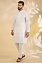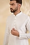 Featuring a white kurta in dupion silk base. It is paired with dupion silk pants. Style it with mojaris for a festive occasion or pooja ceremony.