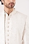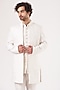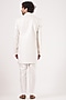 Featuring a white long jacket in blended silk base with thread and sequins embroidery. It is paired with a matching short jacket, modal silk kurta and, dupion silk mexican pants.