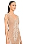 Featuring a beige mini dress in net base with hand embroidery and ruffle sleeves.