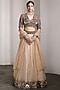 Featuring a beige lehenga in net base with sequins boota detailing and patchwork embellishments. It is paired with a blouse having a V-neckline, tassel detail and sequins work, including a dupatta. Accentuate it with statement jewellery and heels for a wedding, sangeet or engagement ceremony.