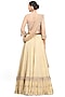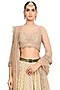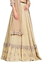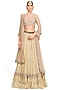 Featuring a beige lehenga in organza base with cord work embroidery, lace detailing and an attached buckle. It is paired with a matching blouse and a net dupatta having cord work lace detail.