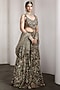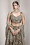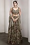 Featuring a beige lehenga in raw silk and net base with floral and velvet patchwork embroidery. It is paired with an embellished blouse and a sheer dupatta having gold floral motifs. Accentuate it with statement jewellery and heels for a wedding, sangeet or engagement ceremony.