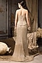 Featuring a beige lehenga in net and velvet base with sequins hand embroidery. It is paired with a corset top having metallic embellishments. Accentuate it with diamond earrings, wedges and a clutch for weddings or sangeet ceremonies.