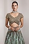 Featuring a blue high-waisted lehenga in organza and poly lurex base with print. It is paired with a blouse having a V-neckline, sequins detailing and hand embroidery. Accentuate it with statement jewellery and heels for a cocktail, sangeet or engagement ceremony.