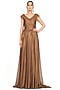 Featuring a copper gown in georgette base with layered frill details and a floor sweeping trail.