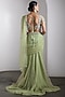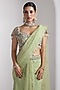 Featuring a green draped saree in net base with sequins work. It is paired with a blouse having beadwork and embellishments. Accentuate it with statement jewellery and heels for a cocktail, mehendi, sangeet or engagement ceremony.