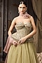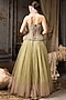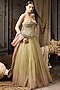 Featuring a green and pink ombre lehenga in soft tulle, raw silk and net base. It is paired with bead work and hand embroidered corset blouse. Accentuate it with diamond earrings, wedges and a clutch for weddings or mehendi ceremonies.