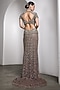 Featuring a grey gown in net base with a deep neckline and patchwork hand embellishment. Accentuate it with statement earrings and block heels for reception ceremonies or cocktail parties.