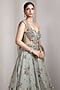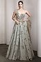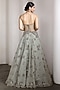 Featuring a grey gown in net base with a sweetheart neckline, sequins floral motif hand embellishment and a single-shoulder drape detail. Accentuate it with statement earrings and block heels for reception ceremonies or cocktail parties.