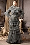 Grey Net Hand Embroidered Ruffled Gown