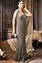 Featuring a grey gown in net and lace base with floral lace and sequins hand embroidery, including embellished straps. Accentuate it with diamond earrings, block heels and a clutch for cocktail soirees or sangeet ceremonies.
