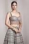 Featuring a grey ruffled lehenga in net and raw silk base. It is paired with a structured blouse having hand embellishment. Accentuate it with statement earrings and block heels for reception or wedding ceremonies.
