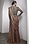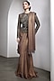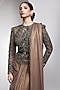 Featuring a metallic nude draped saree in georgette and net base. It is paired with an embroidered blouse. Accentuate it with statement jewellery and heels for a cocktail, sangeet or engagement ceremony.