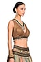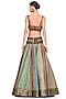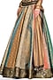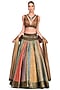 Featuring a multi-coloured lehenga in brocade and georgette base with an embroidered belt. It is paired with a contrasting organza blouse and a tasseled dupatta.