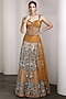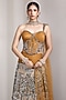 Featuring a mustard lehenga in raw silk and net base with sequins, beadwork and patchwork embroidery. It is paired with an embellished corset and an attached dupatta. Accentuate it with statement jewellery and heels for a wedding, sangeet, haldi or engagement ceremony.