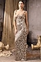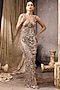 Featuring a nude gown in net base with sequins hand embroidery. Accentuate it with diamond earrings, block heels and a clutch for cocktail soirees or sangeet ceremonies.