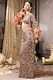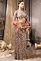 Featuring a nude lehenga in net base with hand embroidery. It is paired with a tassel embellished blouse having feather detail. Accentuate it with diamond earrings, wedges and a clutch for weddings or sangeet ceremonies.