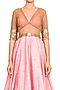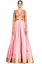 Featuring a pink gown in silk base with gota and scattered embroidery including a buckle belt.