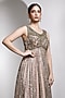 Featuring a pink gown in net base with hand embellishment. Accentuate it with statement earrings and block heels for reception ceremonies or cocktail parties.
