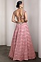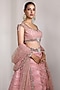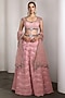 Featuring a pink lehenga in raw silk and net base with ruffle detail. It is paired with a cap-sleeved blouse having bead work and embellishments, including a dupatta. Accentuate it with statement earrings and block heels for sangeet or wedding ceremonies.