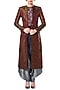 Featuring a teal longline front open sherwani style overcoat in khimkhab brocade base with pockets finished with an embroidered band detailing on sleeves.