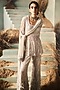 Featuring a grey peplum top in silk and net base with sequins, cutdana and thread embroidery. It is paired with bell-bottom pants and a dupatta. Style this set with statement earrings, high heels and a sling bag. Complete the look with soft glam makeup and a sleek hairdo for your sangeet, festive or reception ceremony