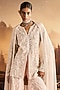 Featuring an ice pink kurta in net and organza base with thread embroidery. It is paired with gharara pants and a dupatta. Style this set with statement earrings, high heels and a sling bag. Complete the look with soft glam makeup and a sleek hairdo for your sangeet, festive or reception ceremony