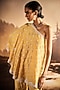 Featuring a mustard one-shoulder cape in silk base with sequins and cutdana embroidery. It is paired with bell-bottom pants and a tube top. Style this set with statement earrings, high heels and a sling bag. Complete the look with soft glam makeup and a sleek hairdo for your sangeet, festive or reception ceremony