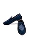 Featuring a pair of deep blue loafers in velvet base with embellishments. It has a leather underlining.