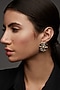 Featuring a pair of gold finish black velvet enameled round stud earrings studded with white zircon, set in 92.5 sterling silver.