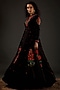 Featuring a black anarkali in chanderi silk and cotton base with resham thread hand embroidery. It is paired with matching churidar pants and a dupatta.