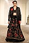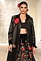 Rohit Bal presents a black long jacket in leather base with embroidery. Accentuate it with a bustier, skirt, drop earrings and block heels for cocktail soirees or an indowestern fusion look.