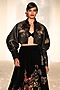 Rohit Bal presents a black short jacket in leather base with embroidery. Accentuate it with a bustier, skirt, drop earrings and block heels for cocktail soirees or an indowestern fusion look.