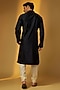 Featuring a black kurta in chanderi base. It is paired with churidar pants. Elevate this kurta set with kolhapuri sandals for a festive occasion, daytime pooja or intimate wedding?rituals.