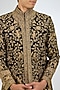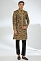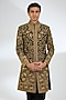 Featuring a black sherwani in velvet base. Style it with pants and loafers for wedding ceremony, exuding charm and timeless elegance.