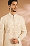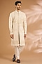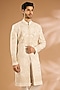 Featuring an ivory sherwani in silk base. Style it up with pants, mojaris and malas for a wedding or engagement ceremony.