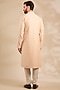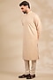Featuring a peach kurta in chanderi base. It is paired with churidar. Style it with pair of mojaris and a bracelet for a festive occasion, cultural event or pooja ceremony.