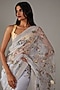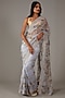 Featuring a powder blue saree in dobby and organza chanderi base with embroidery. It is paired with an unstitched satin blouse piece and an underskirt. Perfect wear for festive occasions.