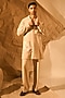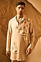Featuring a beige kurta in textured fabric base with handwork. Style it up with pants and mojaris for a festive occasion, family gathering, wedding or engagement ceremony.