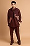 Featuring a brown kurta in cotton crepe rayon base with tassel detailing and handwork. It is paired with a jacket and pants. Style it with kolhapuri sandals for a festive gathering, wedding and engagement ceremony.