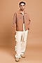 Featuring a camel-colored shacket in poly crepe base with handwork. Style it with pant set and shoes for an evening or cocktail party.