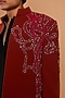 Featuring a dark rust jodhpuri in poly crepe base. Style it with a kurta set and mojaris, perfect for a wedding, sangeet or engagement wear.