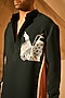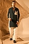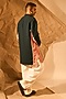 Featuring an emerald green and pink kurta in crepe base with handwork. Accentuate it with pants and kolhapuri sandals for a festive celebration, intimate pooja ceremony, wedding or mehendi ceremony.