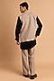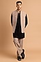 Featuring a grey-green bundi jacket in cotton matka with handwork. It is paired with pants and a cotton crepe rayon kurta. Style it with mojaris for a festive occasion, wedding, mehendi or sangeet ceremony.