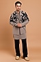 Featuring a grey bundi jacket in poly crepe base with handwork. It is paired with a kurta. Style it with pants, mojaris for a festive gathering or cultural celebrations.