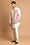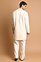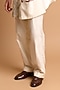 Featuring an off-white kurta in cotton crepe rayon base with floral print, embroidery and handwork. It is paired with pants. Style it with kolhapuri sandals for a festive gathering and intimate pooja ceremony.