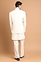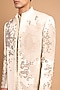 Featuring an off-white indowestern in cotton crepe rayon base with handwork. It is paired with pants. Style it with mojaris and malas for a wedding, engagement or sangeet ceremony.