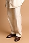 Featuring off-white pants in cotton crepe rayon base. Style it with a kurta and mojaris for a festive occasion or family gathering.
