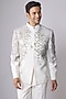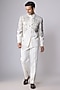 Featuring an off-white bandhgala jacket in silk base. It is paired with pants. Style it with shoes for a festive occasion, weddings or engagement ceremony.